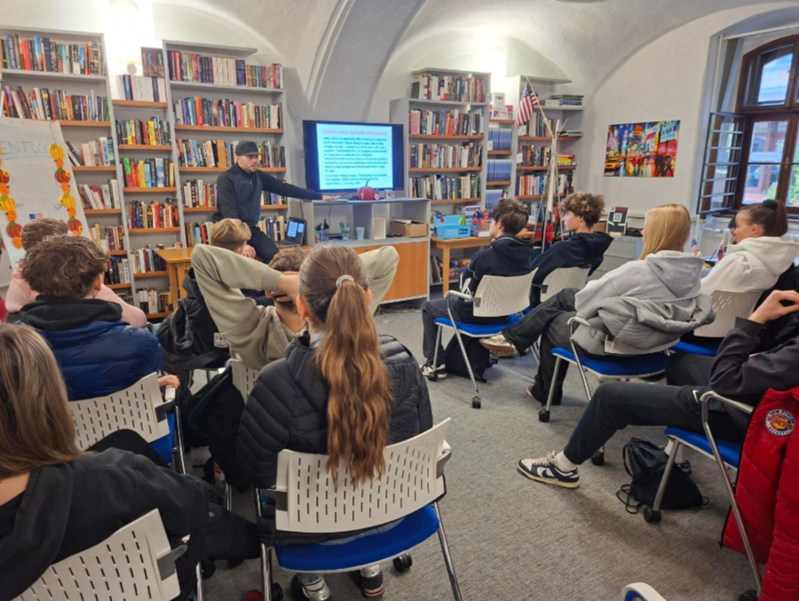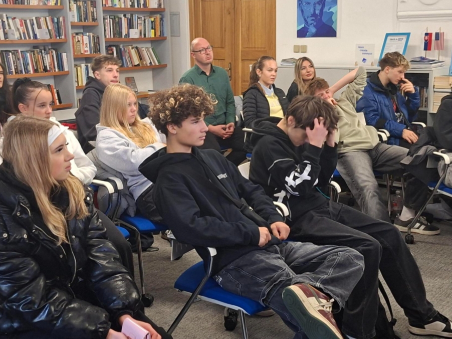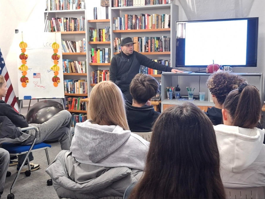 Dňa 24. októbra 2025 sa študenti I.A zúčastnili návštevy Amerického centra v Štátnej vedeckej knižnici v Banskej Bystrici. Tento, pre všetkých, ktorí sa radi učia cudzie jazyky, zaujímavý deň bol venovaný spoznávaniu možností, ktoré centrum ponúka.