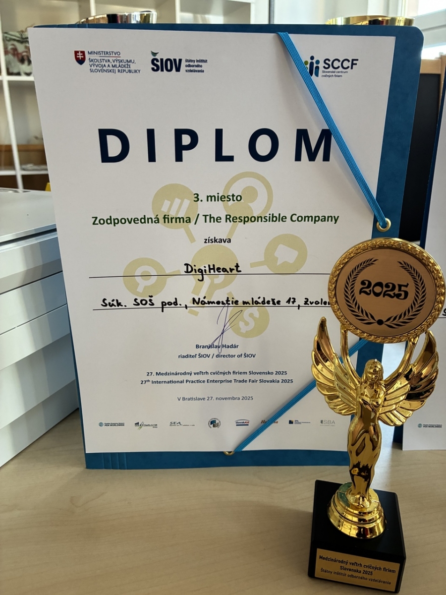 3. miesto v kategórii zodpovedná firma (The Responsible Company) – cvičná firma DigiHeart