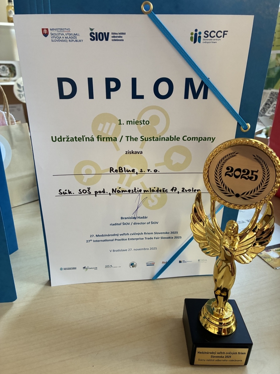 1. miesto v kategórii udržateľná firma (The Sustainable Company) – cvičná firma ReBlue, s. r. o.